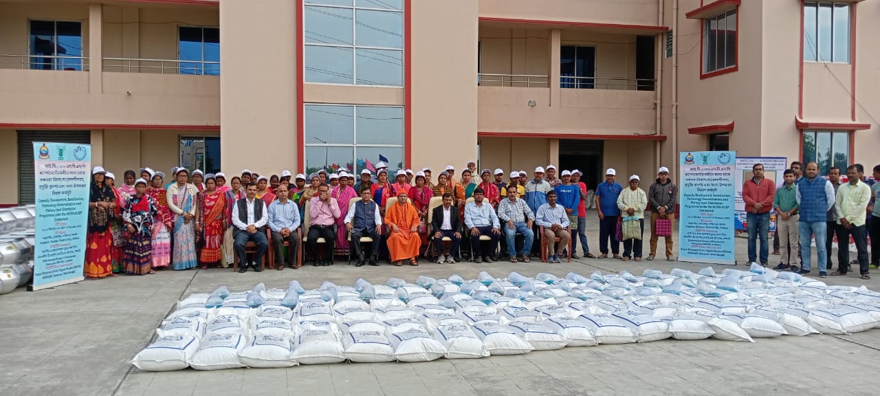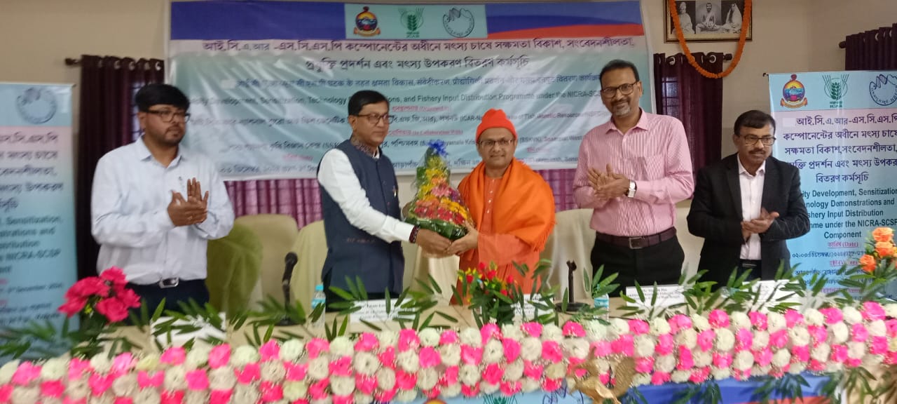 An input distribution and training program on Sustainable Freshwater Fish Farming for Scheduled Caste farmers was organized by ICAR-National Bureau of Fish Genetic Resources, Lucknow and SSKVK, RKMVERI at Arapanch, Sonarpur. The programme aimed at enhancing the livelihoods of marginalized farmers through advanced aquaculture techniques for schedule caste farmers.