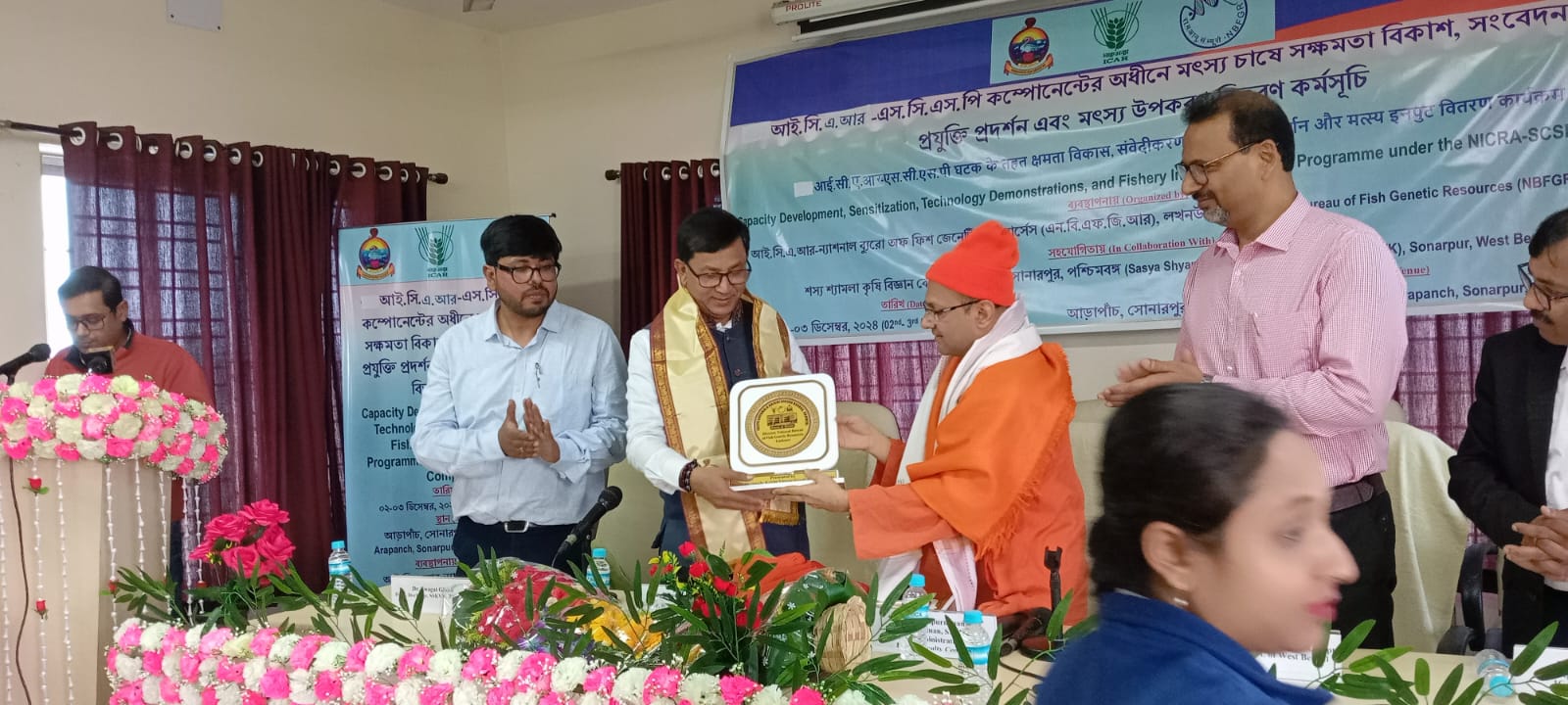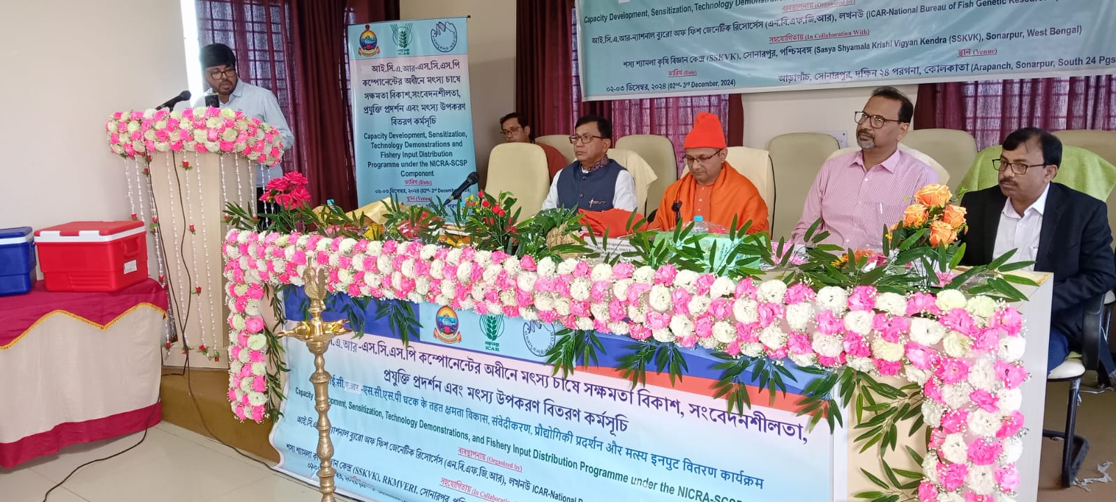 Swami shivapurnanda Ji Maharaj opened the inaugural season with chanting of vaidik mantra. Welcome address by Dr. Swagat Ghosh, Head, in-Charge of SSKVK, Dr. Uttam kumar Sarkar Director, ICAR NBFGR, addressed the program, Dr. Samik Das additional director of fisheries Govt. Of west bengal also explains different schemes in fisheries, several guest speakers and scientists also detailed talk on freshwater fish farming from various ICAR institutions and university.